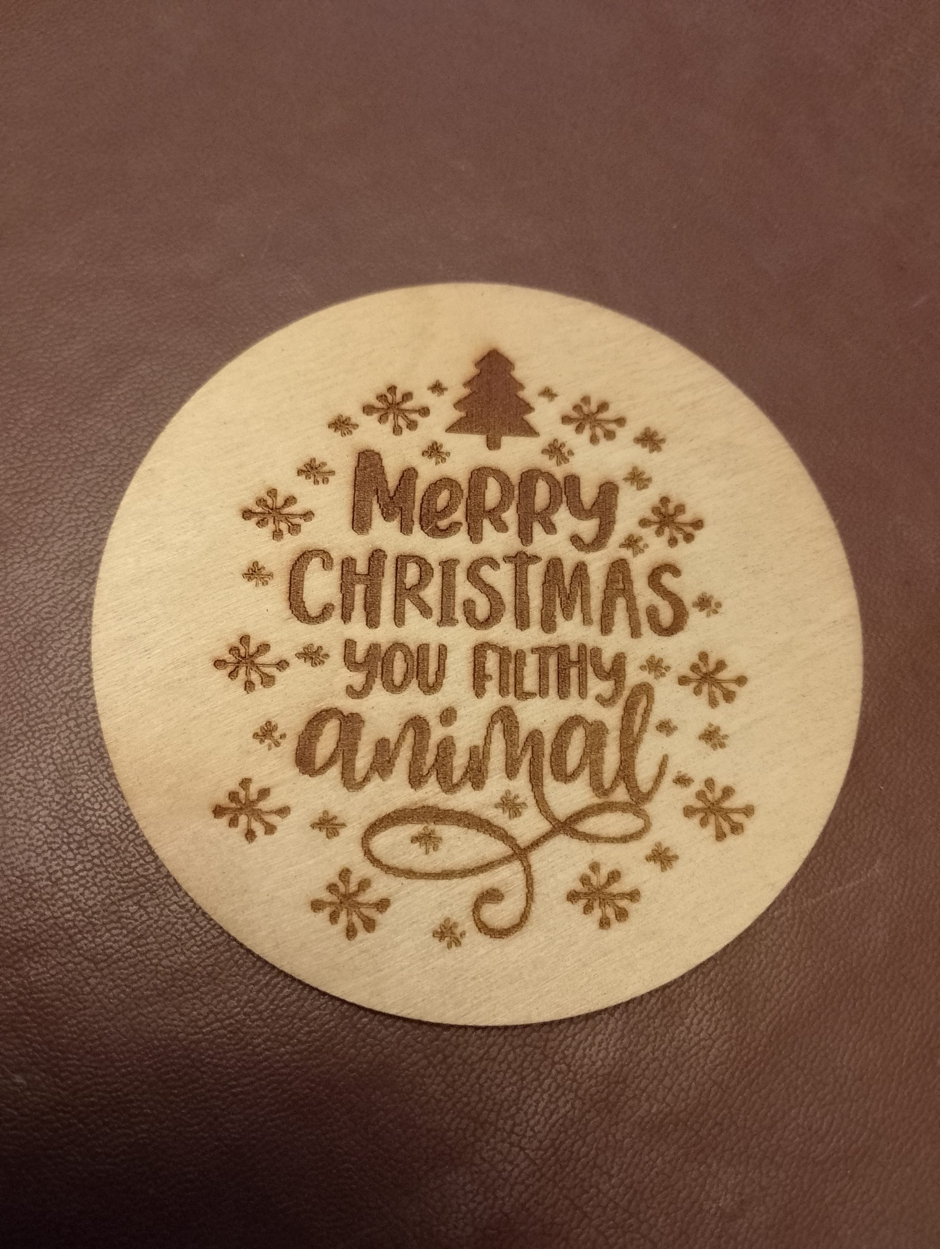 Festive laser engraved wooden coaster – ‘Merry Christmas you filthy animal’